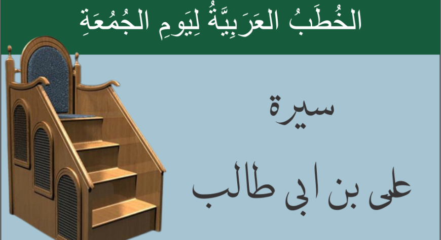 السِّيْرَةُ ٱلْمُبَارَكَةُ لِلْخَلِيفَةِ الرَّابِعِ عَلِيِّ بْنِ أَبِي طَالِبٍ رَضِيَ ٱللَّهُ عَنْهُ الخُطْبَةُ ٱلْأُولَى اَلْـحَمْدُ لِلَّهِ الْحَمْدَ الطَّيِّبِ الْمُبَارَكِ فِيهِ، نَحْمَدُهُ...
